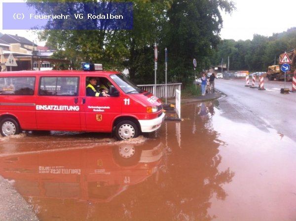 Es wurden zwischen 16:51 Uhr und 01:00 Uhr insgesamt 93 Schadensstellen beseitigt. Im Einsatz waren alle Wehren der Verbandsgemeinde Rodalben. Unterstützt wurden diese durch die Feuerwehren der Verbandsgemeinde Hauenstein und Dahner Felsenland, da dort keine größeren Unwetterschäden zu beklagen waren. Ebenso wurde das THW Hauenstein zur Unterstützung angefordert. Das THW der Stadt Pirmasens war im Auftrag der Stadtwerke mit der Sicherung des Wasserwerkes in Rodalben beauftragt.