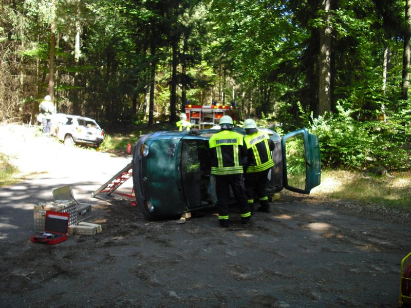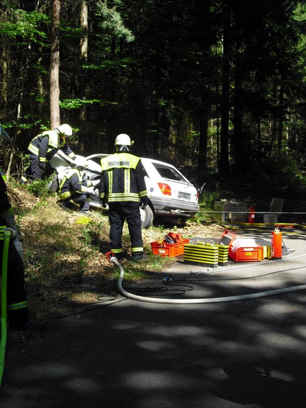 Am Samstag, den 18. August 2012 kam um 15:03 Uhr ein Alarm für die Freiwillige Feuerwehr Leimen. Bei diesem Einsatz handelte es sich um einen Übungseinsatz. Zuerst wurden die Funkmelder alarmiert und kurze Zeit später ertönte die Sirene auf dem Leimener Rathaus. Diese Alarmierung erfolgte von Rodalben durch die Feuerwehreinsatzzentrale (FEZ). Nach der Alarmierung dauerte es nicht lange und die ersten Feuerwehrleute kamen am Gerätehaus an. Als erstes fuhr unser VRW (Vorrausrüstwagen) die Unfallstelle an, da es sich um einen Verkehrsunfall handelte. Das Auto war mit einer Staffelbesatzung 1/5 unterwegs (6 Personen). Kurze Zeit danach fuhr das TSF-W (Tragkraftspritzenfahrzeug Wasser) die Einsatzstelle an. Auch dieses Auto war mit 6 Mann (1/5) voll besetzt.