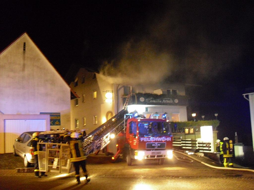 Als gegen 19 Uhr die Funkmelder und die Sirene ertönten, wurde ein Gebäudebrand in der Hauptstraße 25 bei der Pension Arnold gemeldet.
