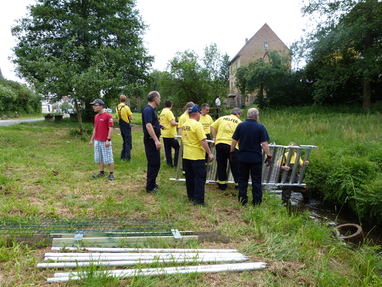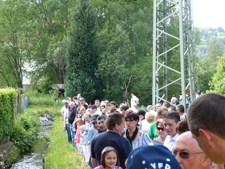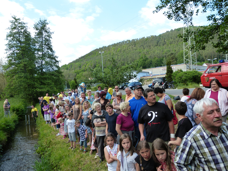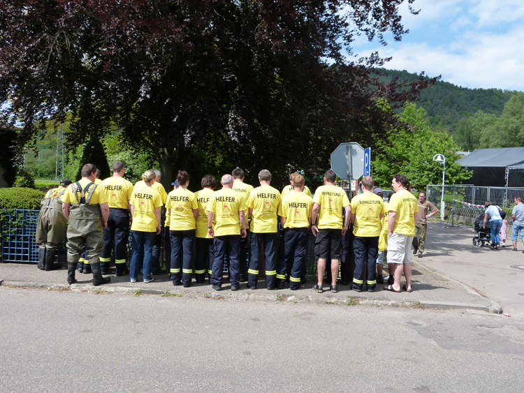 Eine Woche vor dem Kienholzfest fand am Samstag die Generalprobe statt, der Zieleinlauf wurde entsprechend im Bachbett eingebaut und mehrere Probeenten kamen zum Einsatz. Weiterhin wurde der Bachlauf der gesamten Rennstrecke kotrolliert und entsprechend gesäubert.