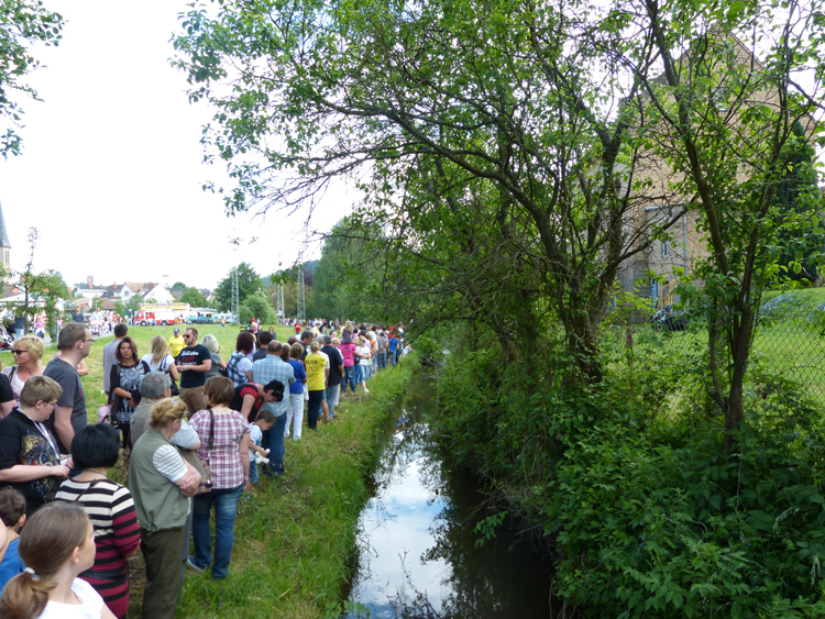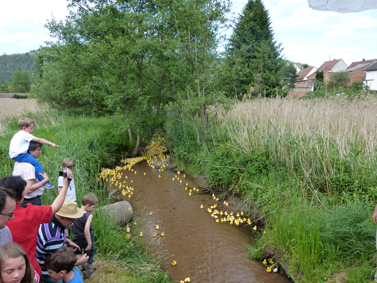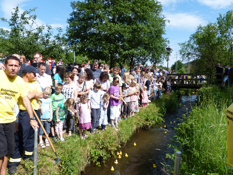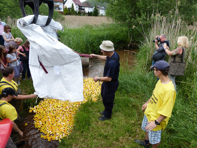 Am Renntag wurde um 13:00 Uhr der Zieleinlauf im Bachbett eingebaut und nochmals der gesamte Bachlauf abgegangen. Weiterhin wurde der Start des Entenrennen vorbereitet, hier wurden alle 1150 Enten in einem Bigbag gefüllt. Der Bigbag wurde mit einem Kran über das Gewässer gehalten und nach dem Startschuß durch einen Feuerwehrmann geöffnet.