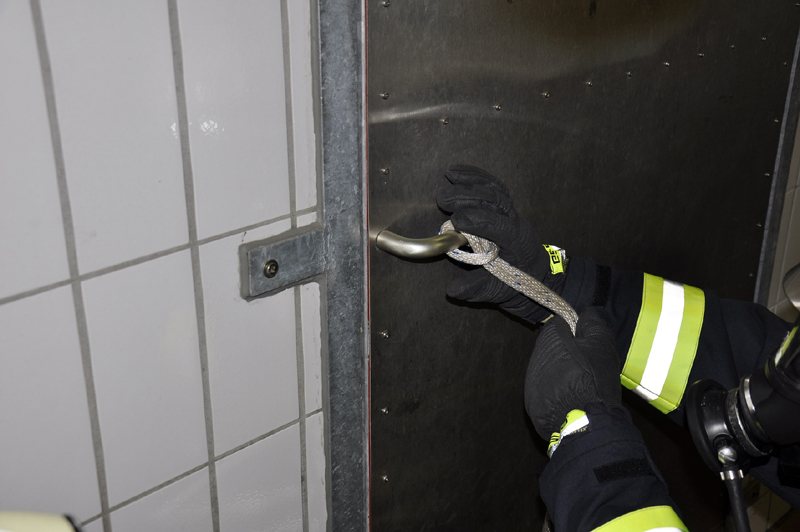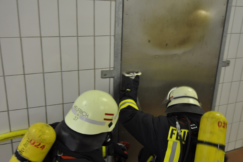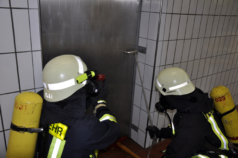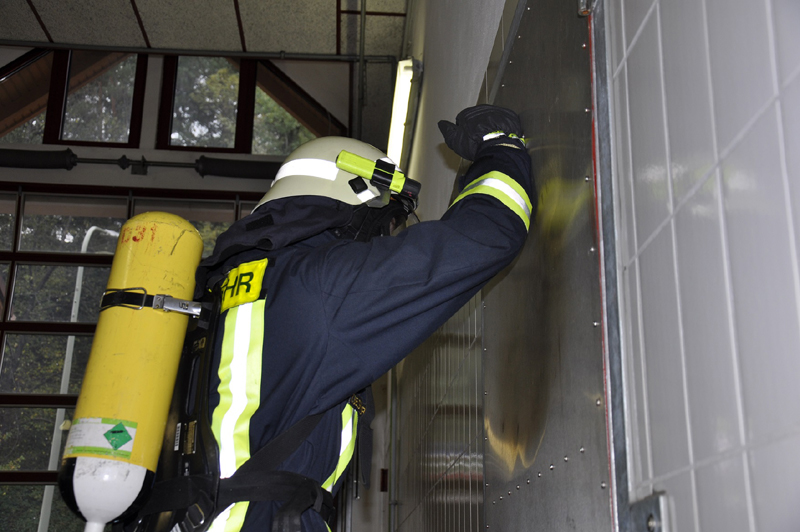 Inhalte waren: - Grundlagen und Einsatzgrundsätze - Checkliste vor dem Einsatz - Der Atemschutztrupp (Aufgaben Truppmann und Truppführer) - Ausrüstung im Innenangriff - Schlauchmanagement (Loop, Hotel-Pack) - Türöffnung während des Innenangriffs sowie Rauchgaskühlung - Durchsuchen von Räumen Nach einer Stunde war der theoretische Teil beendet und die Gruppe fuhr mit dem TLF 16/25 nach Rodalben. Dort wird in der Waschhalle eine „Heiße Tür“, die speziell zum Training der Atemschutzgeräteträger gedacht ist, vorgehalten. Diese ermöglicht den Einsatzkräften realitätsnahes Üben, an einer mit Temperatur beaufschlagten Tür, wie sie es im Einsatzfall auch vorfinden würden. Immer Truppweise wurde Türöffnung und Rauchgaskühlung geübt. Die Rollen von Truppmann und Truppführer wurden immer wieder Trupp intern gewechselt. Nach einem anstrengenden Vormittag beendeten wir die Fortbildung um 13:00Uhr. Für die Winterzeit ist noch eine weitere Atemschutzfortbildung mit dem Schwerpunkt „Atemschutznotfälle“ geplant.