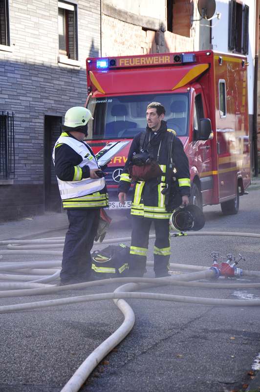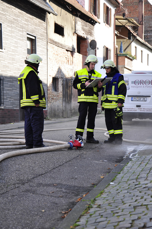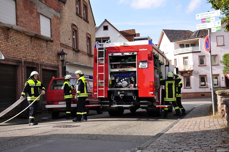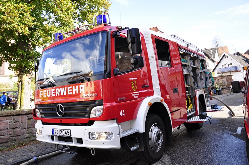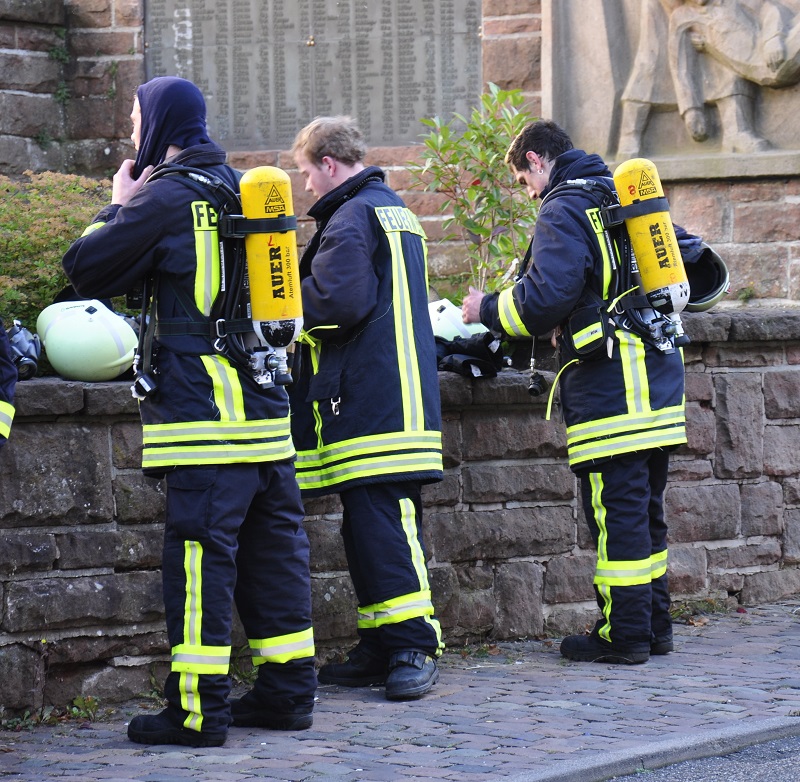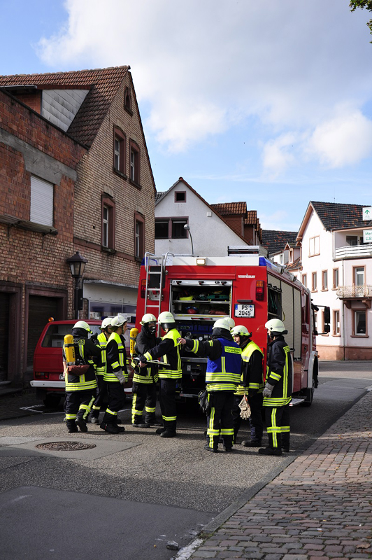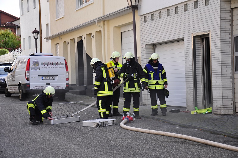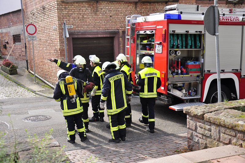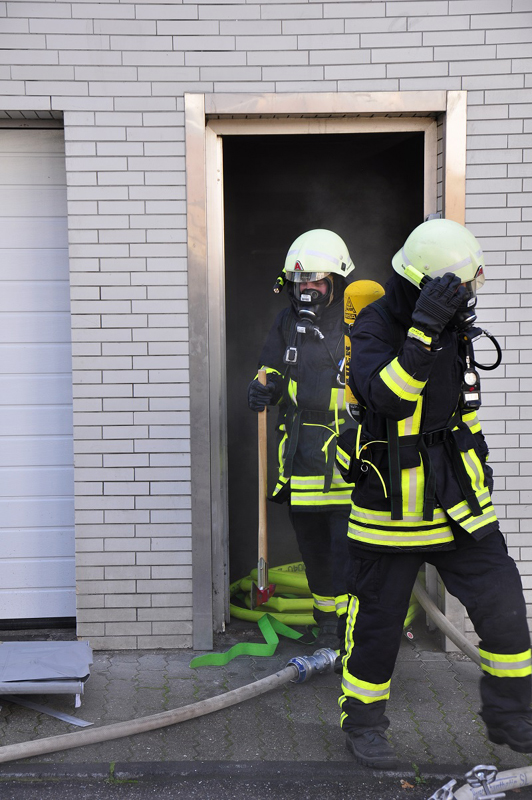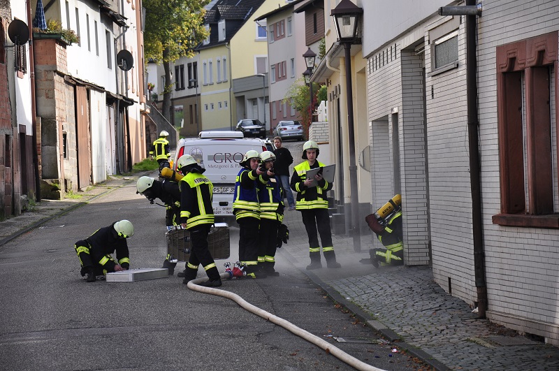 Schon während der Erkundung waren mehrere kleine Explosionen zu hören. Daraufhin drang dichter Rauch aus dem Gebäude. Nach Angaben des Betreibers mehr als 2 Personen in den Produktionsräumen vermisst. Mittlerweile war auch das TLF 16/25 mit 1/5 darunter 4 Atemschutzgeräteträger auf der Anfahrt. Der Gerätewagen Messtechnik GW – Mess wurde zum Messen der Gaskonzentration ebenfalls zur Einsatzstelle beordert. Unter Atemschutz ging der Angriffstrupp, zum suchen der vermissten Personen, in die Produktionsräume vor. Die erste Person konnte schon nach kurzer Zeit ins Freie gebracht und dem Rettungsdienst übergeben werden. Die Mannschaft des TLF 16/25 stellte zuerst die Wasserversorgung der Fahrzeuge her und konnte danach mit Atemschutzgeräteträgern unterstützen. Kurz darauf konnte auch die zweite Person gefunden und an den Rettungsdienst übergeben werden. Jetzt suchten gleichzeitig zwei Atemschutztrupps parallel die Produktionsstätte ab, konnten aber keine weitere Person finden. Der erste Angriffstrupp hatte sich nun zum Brandherd vorgearbeitet und löschte diesen erfolgreich ab. Der zwischenzeitlich eingetroffene GW – Mess, mit Fachpersonal im Bereich Gefahrstoffe, konnte keine Gefahr durch das Gas mehr feststellen. Nach und nach zogen sich die Trupps aus dem Innenangriff zurück. Zur Sicherheit wurde das angrenzende Wohngebäude überprüft. Gegen 15:00Uhr konnten wir die Übung beenden.