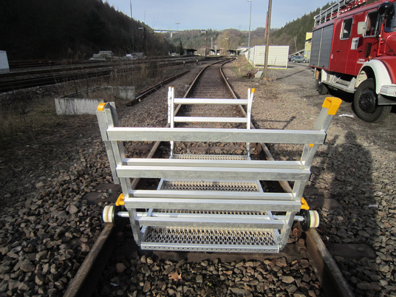Seit mehreren Jahren hat die Feuerwehr Münchweiler eine Rettungsplattform für die LKW Rettung, an dieser Rettungsplattform kann man vier Rollen montieren und dann die Plattform als Schienenretter nutzen.