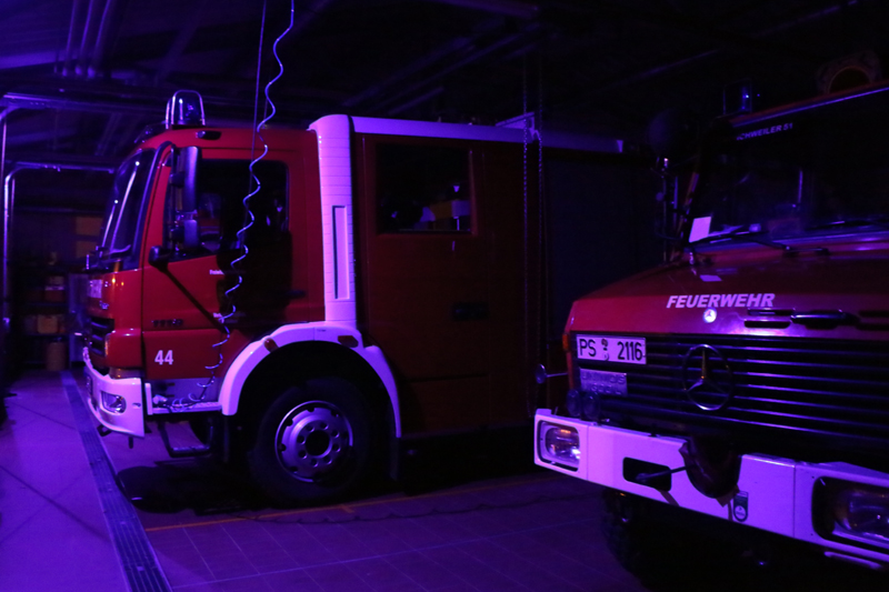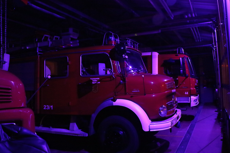 Grundsätzlich sieht der Effekt von blauen Licht und roten Fahrzeugen gut aus. Bis jetzt war die Fahrzeughalle nachts einfach nur „dunkel“. Nun ist sie für alle gut wahrnehmbar, was eine 24 stündige Einsatzbereitschaft symbolisieren soll. Weil das Gerätehaus außerhalb der Ortsbebauung steht, ist eine dauerhafte Beleuchtung in der Nacht auch ein gewisser Schutz vor Einbrüchen. In das Feuerwehrhaus wurde ja vor vier Jahren einmal eingebrochen.
