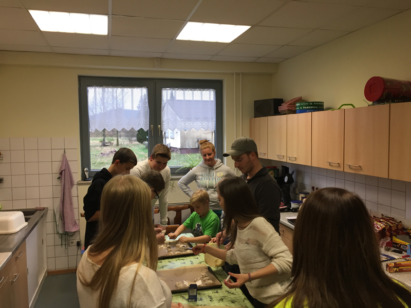 Pünktlich um 15:00 Uhr startet das rege Treiben in der Weihnachtsbäckerei, die Mitglieder der Jugendfeuerwehr rollten Teig aus, danach wurden mit verschiedenen Förmchen die Plätzchen aus dem Teig ausgestochen. Natürlich durften hier verschiedene Feuerwehrmotive nicht fehlen.