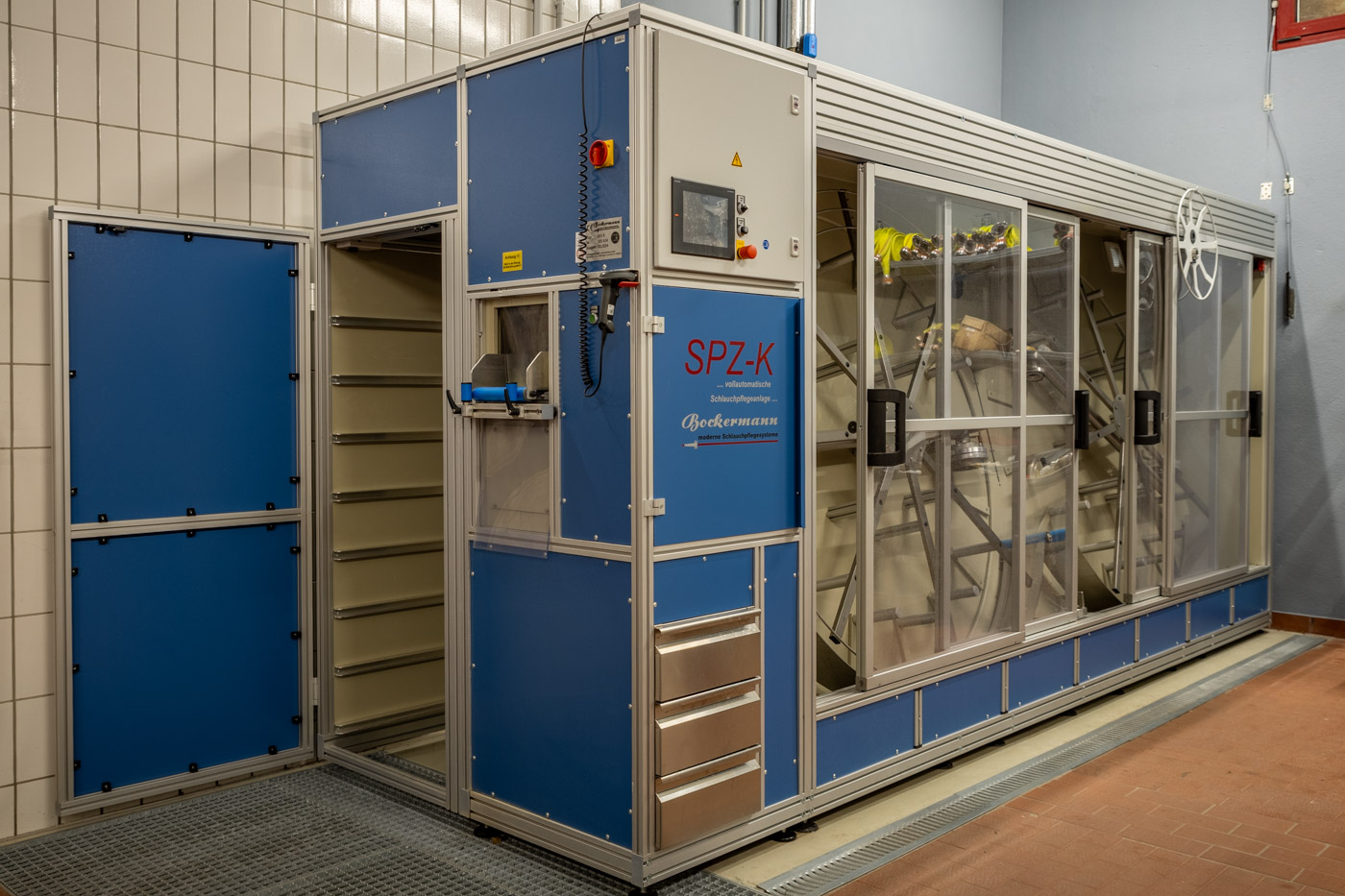 Die Anlage ermöglicht das effiziente Waschen von C- und B-Schläuchen und sorgt durch ihre leistungsstarke Bürsten- und Wassertechnik für eine zuverlässige Entfernung von Schmutz, Ruß und Einsatzrückständen. Dadurch wird nicht nur die Hygiene sichergestellt, sondern auch die Lebensdauer der Schläuche deutlich verlängert.